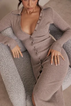 ‚Celine‘ cardigan in chocolate, classic sneakers or knee high boots.