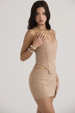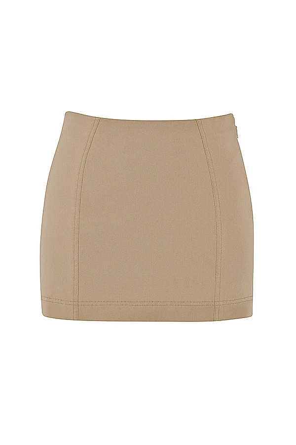 This sleek, chic style is perfect for effortless dressing. Cut from a stretch woven fabric in beige, ‚Nisha‘ grazes the thigh. It has a zip to the left for easy on and is fully lined for comfort. Wear yours with our ‚Flavia‘ corset for a matching vibe.