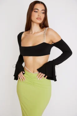 Every party season requires a touch of sparkle and our ‚June‘ Top doesn’t disappoint. Cut from a weighted stretch jersey that skims your figure, it features a bandeau style and detailed with shimmering crystal rope trim shoulder straps and bows to the fluted cuffs that glisten beautifully in the light. The body is fully lined for comfort and it has a zip to the back for easy on. Wear yous with our ‚Maylene‘ skirt.