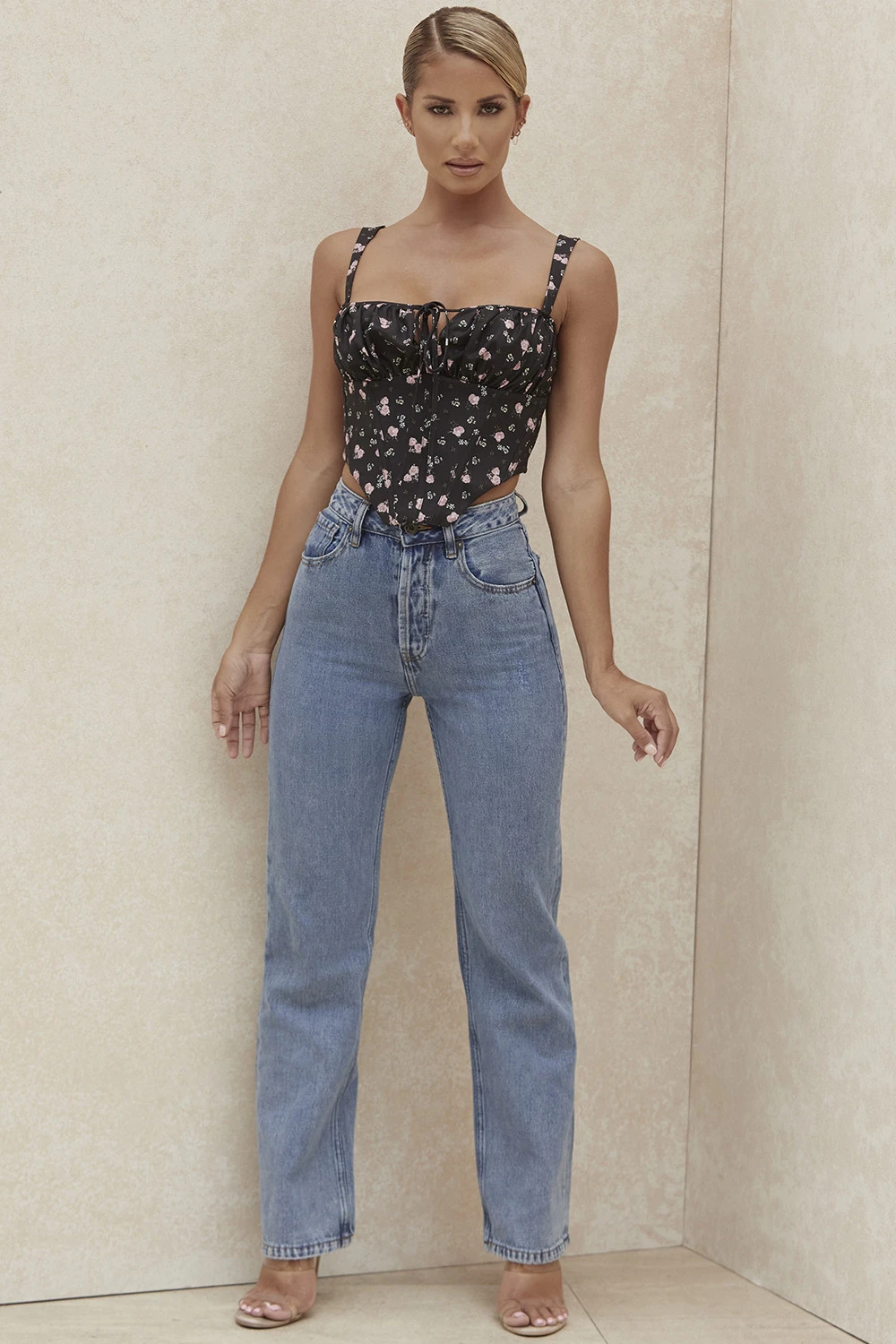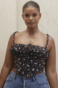 Ultra pretty vibes in ‚Gene‘. It’s cut from our prettiest floral printed lightweight crepe and features a delicate strappy cut. The bodice is fully corsetted to cinch the waist and the front bodice dips down at the front hem. The cups are lightly lined for comfort & the corset is fully lined for a smooth and comfortable fit. As corsets are designed to fit snugly, we recommend sizing up if you are between sizes.
