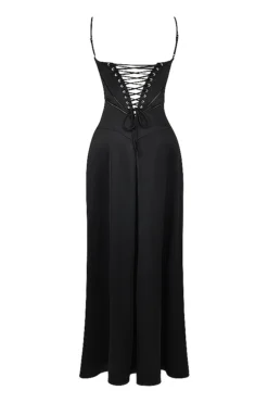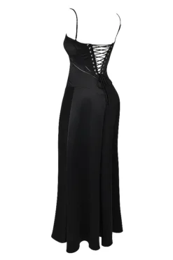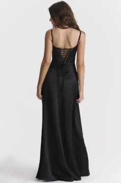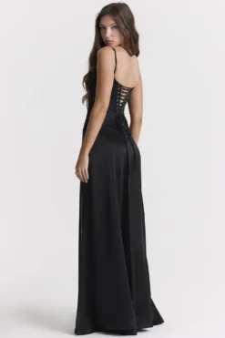 The bodice has a curved hem that sits below the natural waistline and we’re loving the corset inspired lace up back for a vintage feel. The skirt skims over the hips, falling freely to the floor and ‚Anabella‘ would not be complete without tonal heels like our ‚Paris‘ in black suede for glamorous events. The ‚Regular Cup‘ option suits cup size A-C whilst the ‚Bigger Cup‘ option suits cup size D-E.