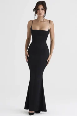 Romantic silhouettes and elegant glamour is what makes our new season collection feel so special and ‚Olivette‘ ticks all the right boxes. Cut from our lustrous silk satin in a timeless black hue, ‚Olivette‘ has a close fitting silhouette for an ultra feminine hourglass shape and the curved neckline and slim adjustable straps frame the dĂ©colletage so beautifully. It’s fully lined for comfort and has a zip to the back for easy on. Wear yours with our ‚Paris‘ heels in black suede for those glam functions and events.