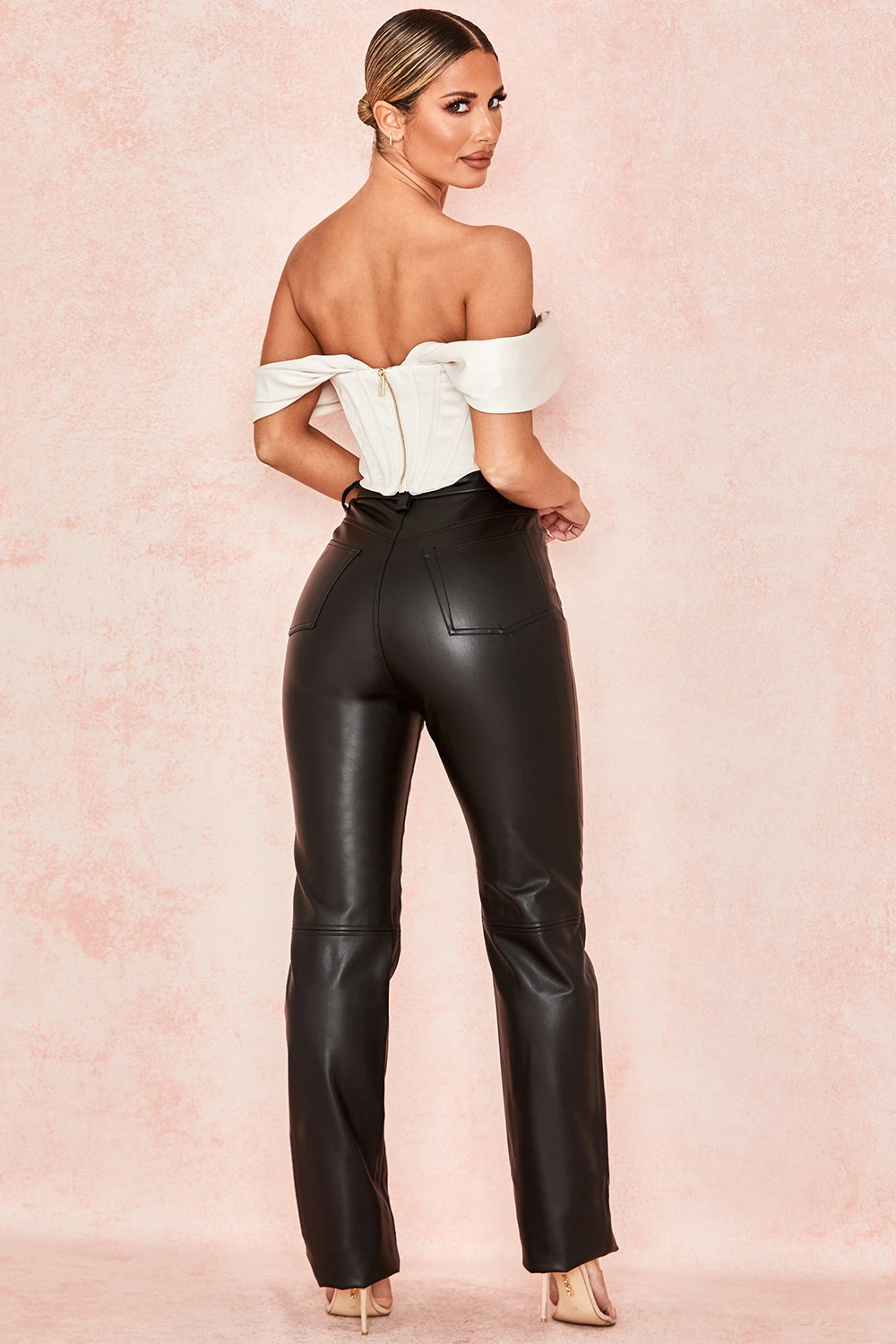The best cut you’ll ever find, and that’s according to our Founder, Conna Walker who currently lives in these. ‚Inaya‘ are cut from the softest stretch vegan leather. They have a tailored cut with a high waist and straight legs. They hug the butt for that perfect peachy fit and the waistband sits at the natural waist. Softly lined for a smooth comfortable fit that avoids the dreaded ’sticky fit‘ of other vegan leather trousers. Team yours with a corset as our model wore or with a bodysuit and heels.