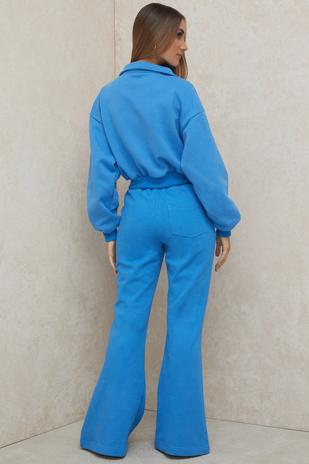 Cut from cosy loop back jersey, ‚Oli‘ have a flared leg style finished with a sharp pin tuck to elongate the legs. They are cut to skim and sit high on the waist with a deep waistband that emphasises your small waist. Three pocket style with HOCB branding finishes the look. Wear yours with a bodysuit or one of our ‚Tommy‘ crewneck sweatshirts.