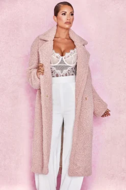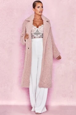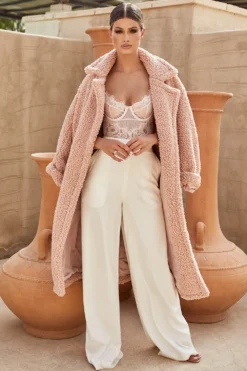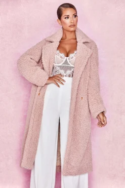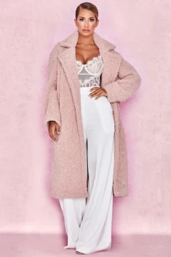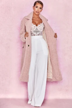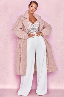 The coat you’ve all been waiting for is here. Crafted from a soft and luxurious faux fur, ‚Bear‘ has an oversized relaxed fit, long sleeves and half belt. We love this teamed over all blush for a super glamorous monochrome look.