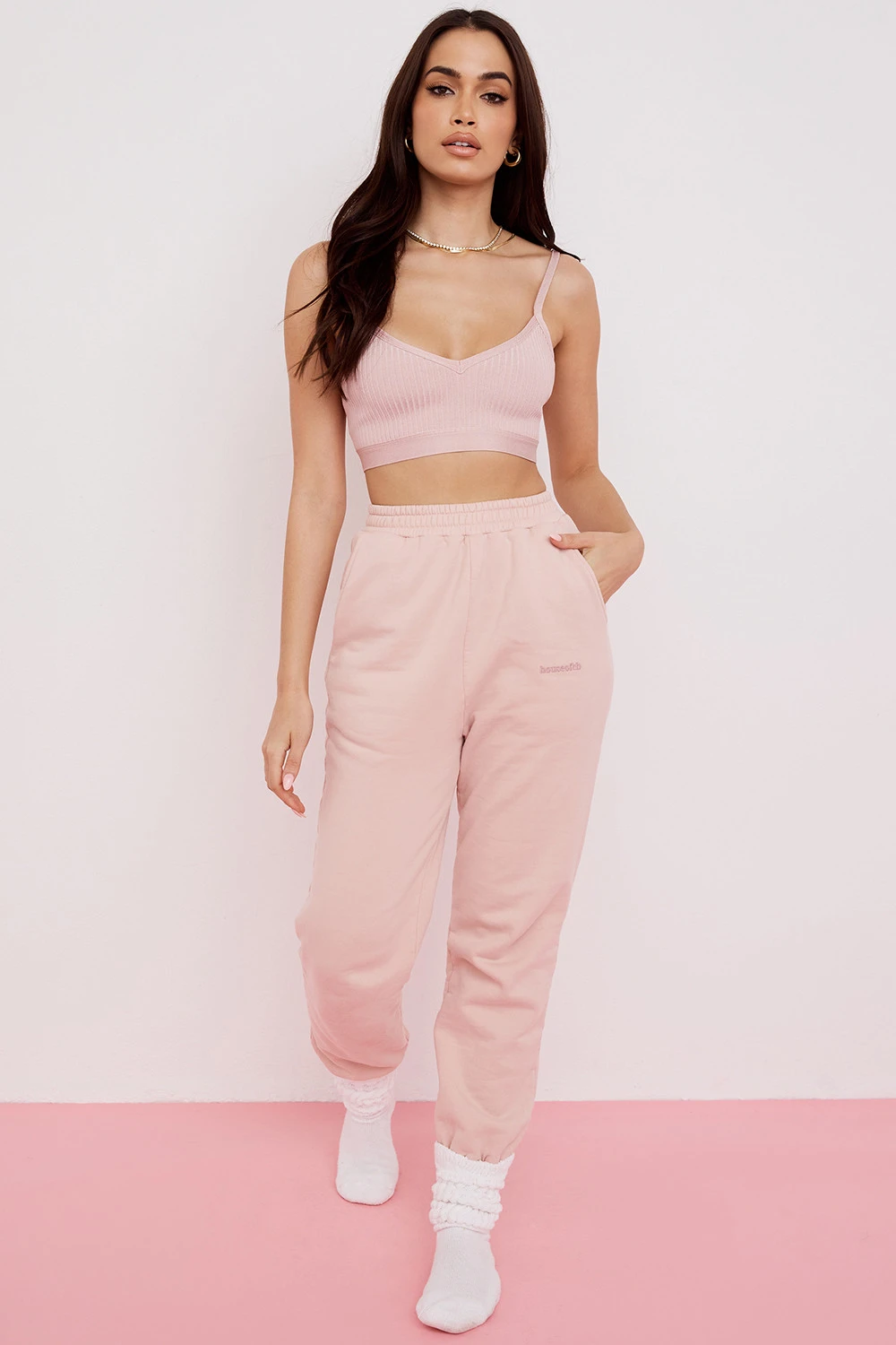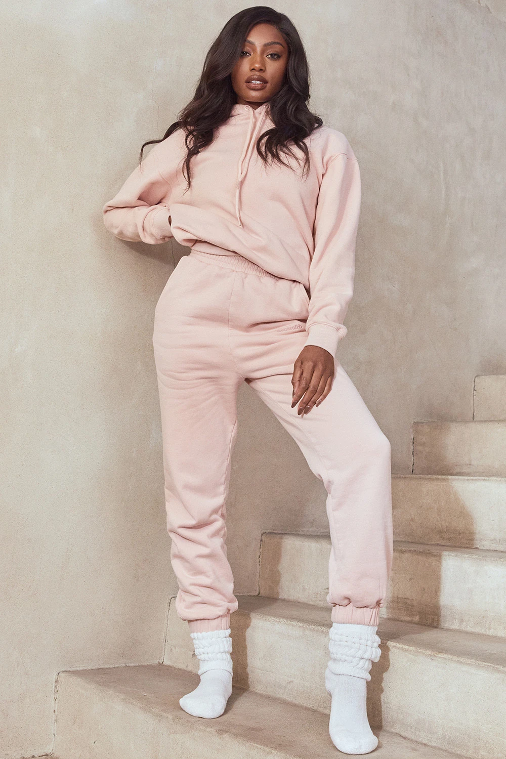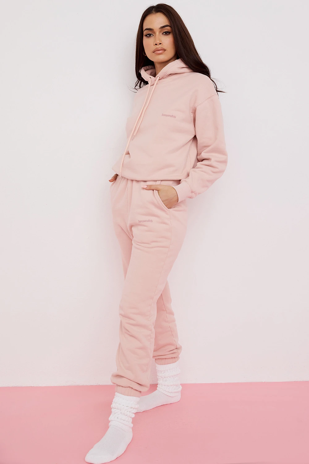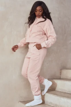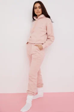 Our ‚Sky‘ joggers are cut from our ultra premium quality heavyweight fleece back jersey with a flattering elasticated waistband and cuffed hems. Featuring a three pocket style and our HouseofCB logo to the front, they are cut with a loose comfortable fit that looks great styled up or down. The slight vintage wash gives it that ultra casual look. Team up with our ‚Halo‘ Blush Oversized Hoodie for warm winter dressing.