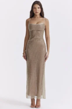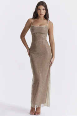 The barely there satin straps adjust for the perfect fit and the split to the back makes for easy movement. ‚Alondra‘ zips up the back for easy on and looks the most chic styled with neutral heels like our ‚Lucent‘ mules for those glam functions and events.