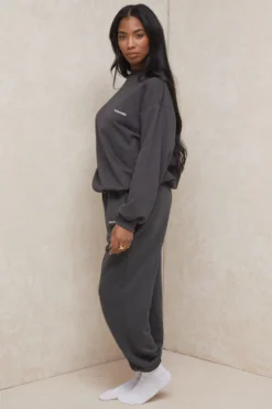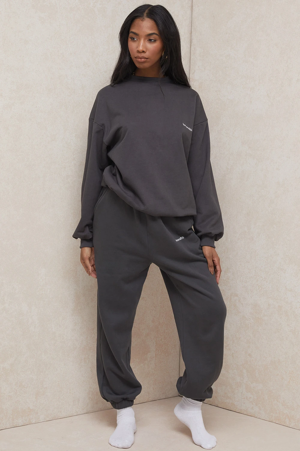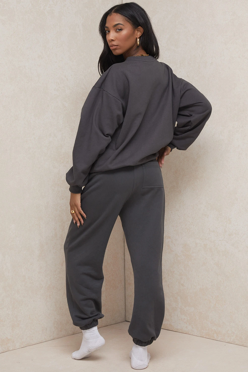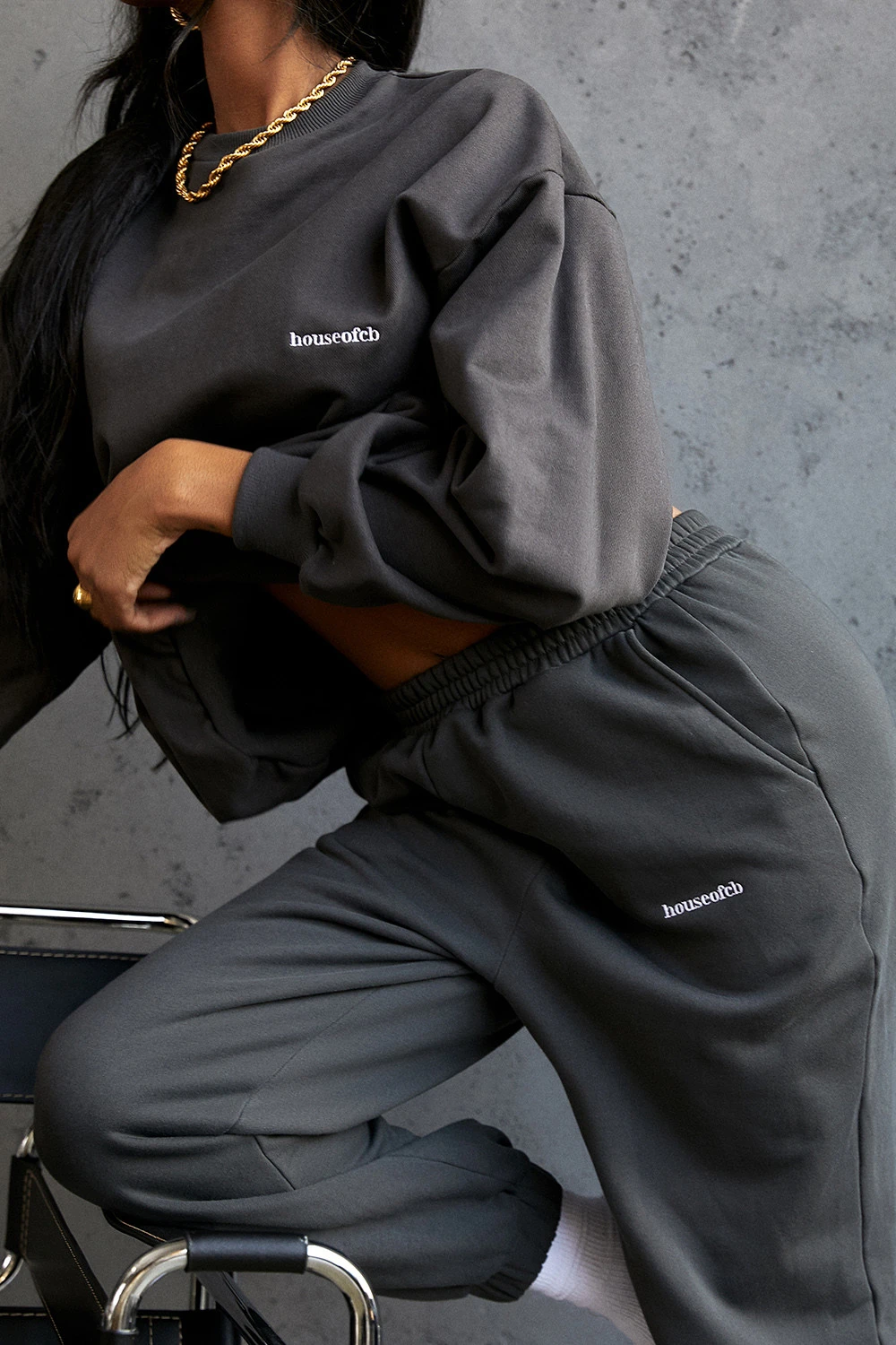Our ‚Sky‘ joggers are cut from our ultra premium quality heavyweight fleece back jersey with a flattering elasticated waistband and cuffed hems. Featuring a three pocket style and our HouseofCB logo to the front, they are cut with a loose comfortable fit that looks great styled up or down. Team up with our ‚Halo‘ Charcoal Oversized Hoodie for warm winter dressing.