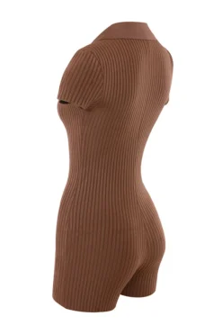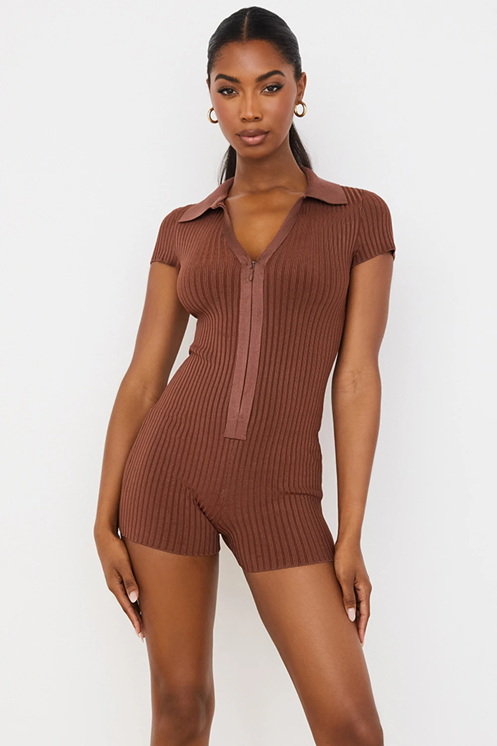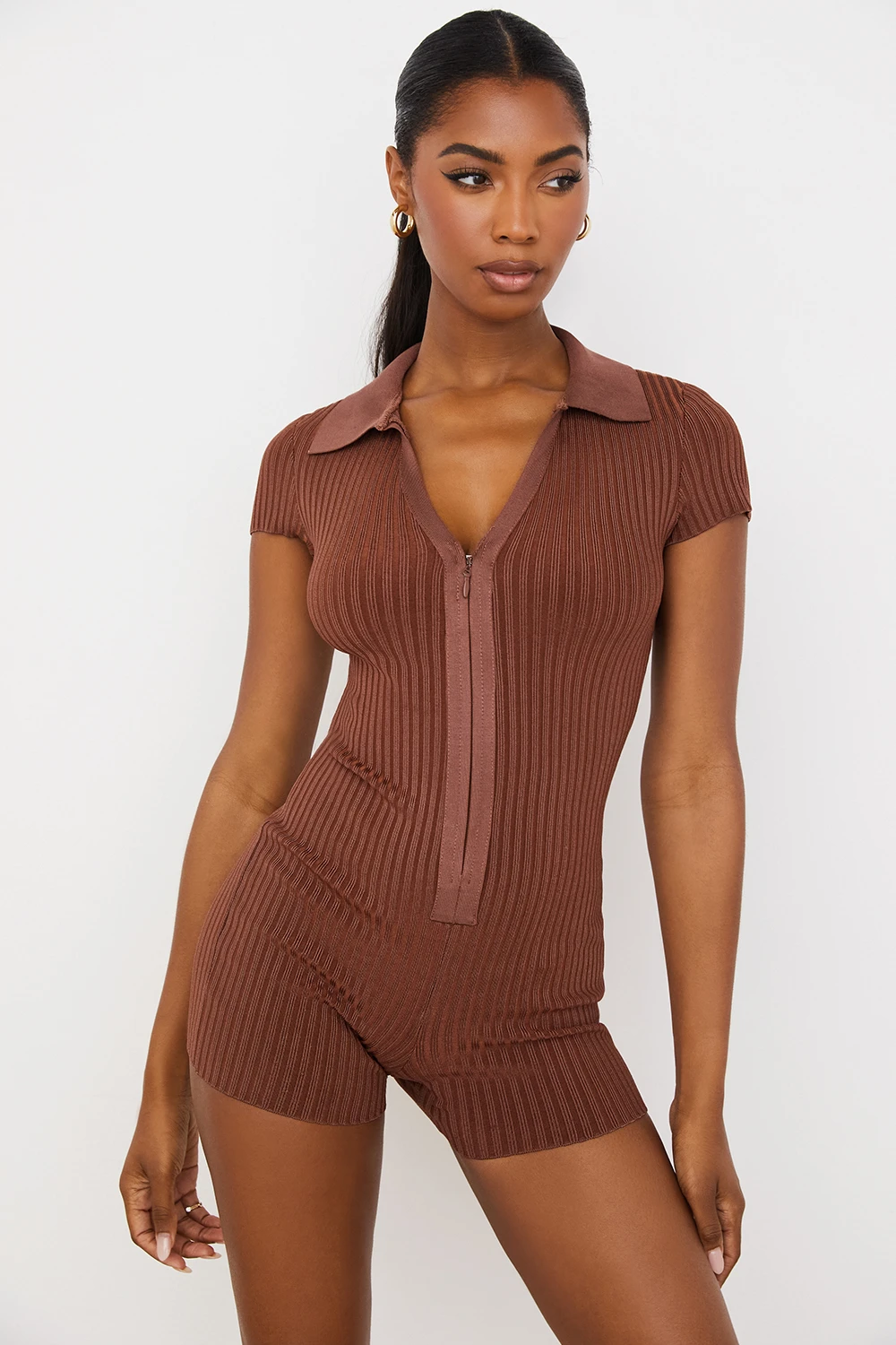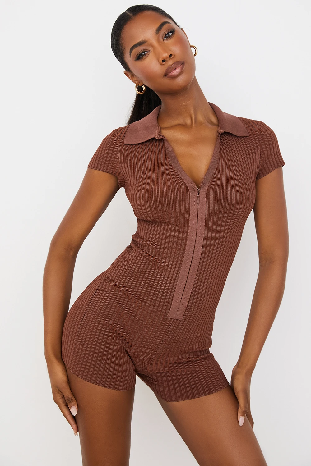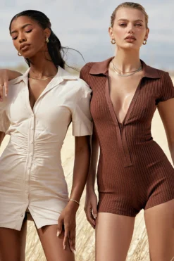 This ultra stylish playsuit is cut from our signature stretch bandage fabric for a body sculpting fit that hits you in all the right places to embrace your natural curves. ‚Lina‘ has a ribbed texture  and a playful zip to the front that extends down past the waistline to reveal as much cleavage as you desire.