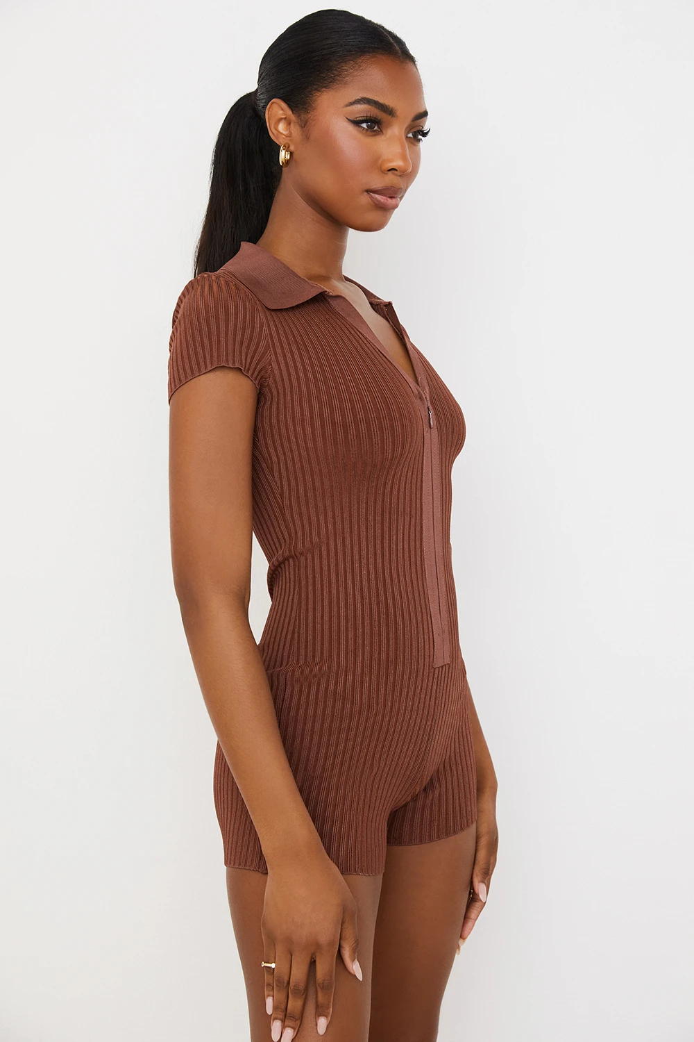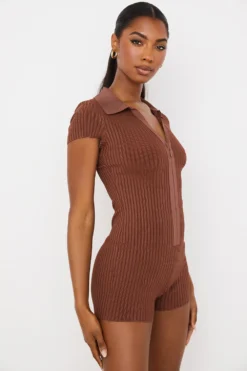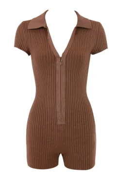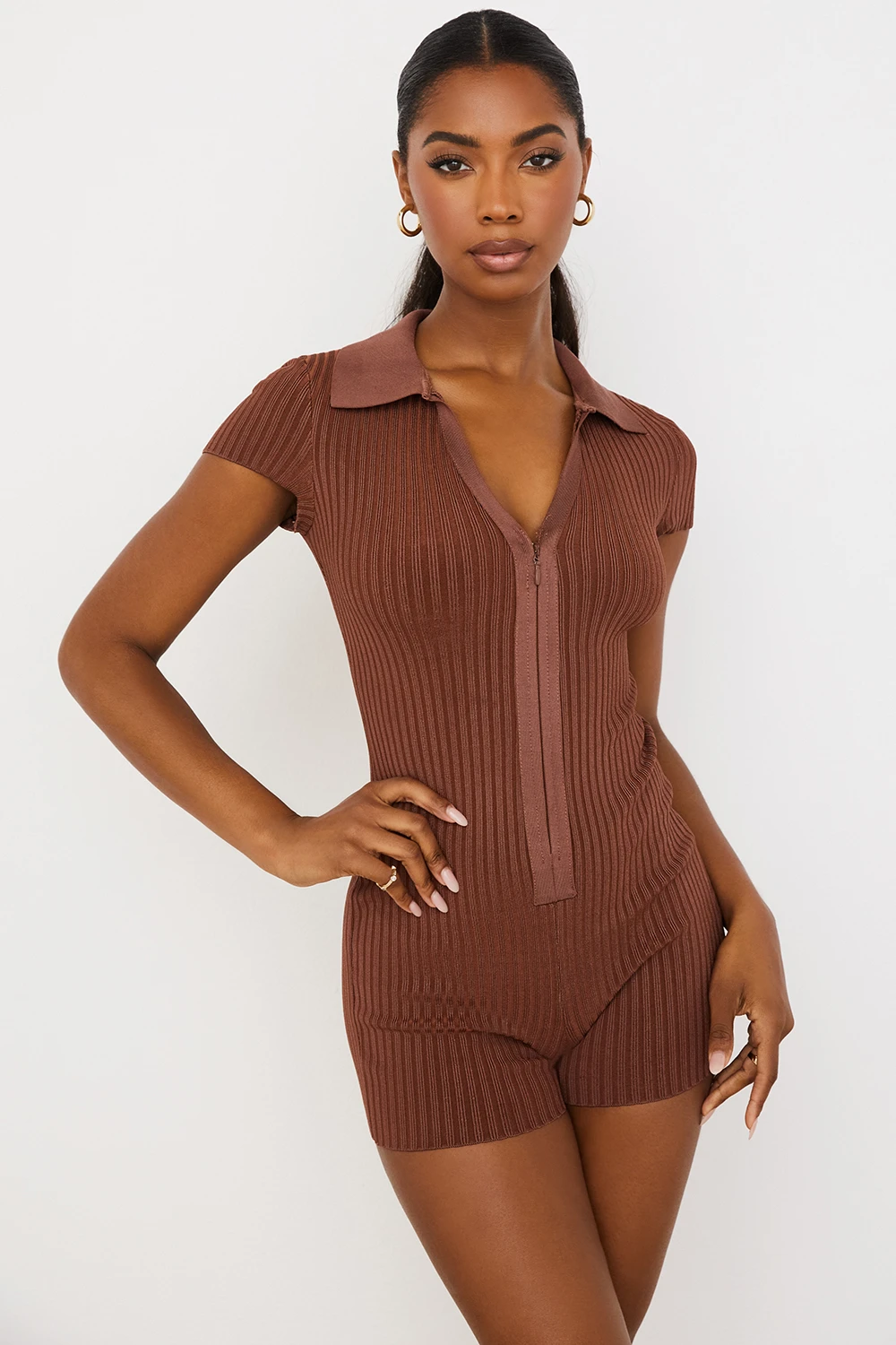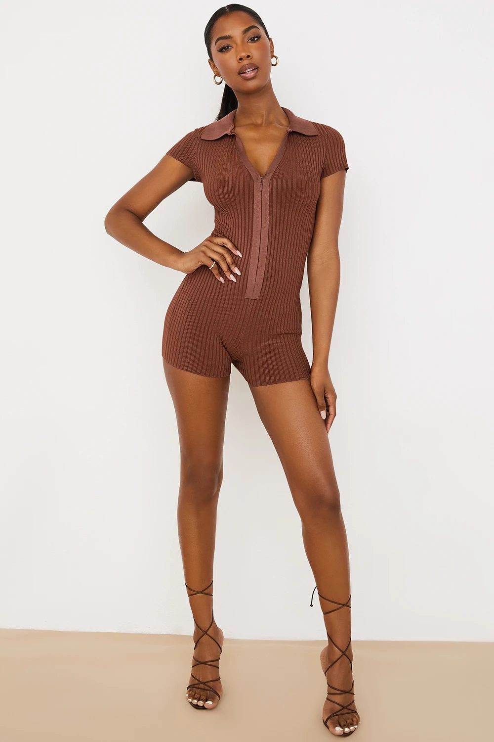 This ultra stylish playsuit is cut from our signature stretch bandage fabric for a body sculpting fit that hits you in all the right places to embrace your natural curves. ‚Lina‘ has a ribbed texture  and a playful zip to the front that extends down past the waistline to reveal as much cleavage as you desire.