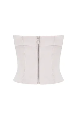 We love the single streamlining seam under the bust for a structured fit and the tonal topstitching for a feminine finish. It is fully lined for comfort and fitted with our internal waist stay to keep it perfectly in place with a zip to the back for easy on. Wear yours with our ‚Daria‘ trousers in crystal for an ultra chic tonal vibe. As corsets are designed to fit snugly, we recommend sizing up if you are between sizes.