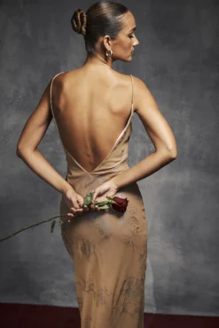 The slender shoulder straps frame the sleek open back and ‚Gabrielle‘ falls to a classy maxi length as it grazes your highest heels. It has a zip to the left side for easy on and is fully lined for comfort. Wear yours with our ‚Paris‘ heels in caramel.