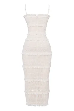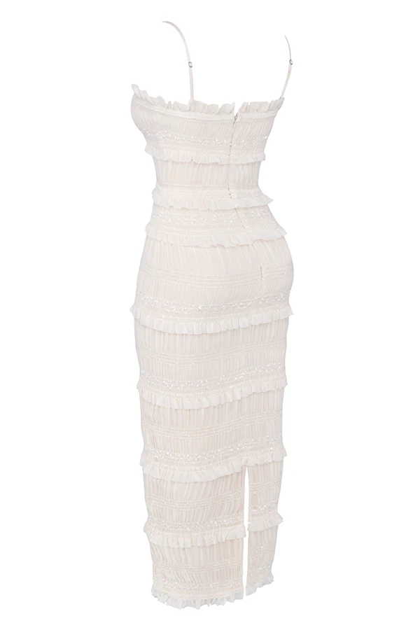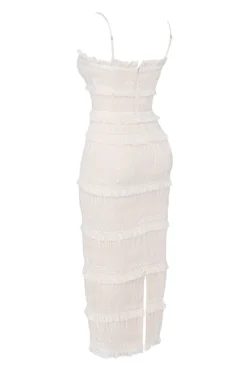 Fully lined to the knee in our special stretch power mesh gives ‚Solana‘ a figure cinching fit for a curve creating shape. Wear yours with our ‚Lucent‘ mules to your next glamorous event. The elegant and romantic vibe also makes it the perfect dress for modern brides still wanting to make an entrance.