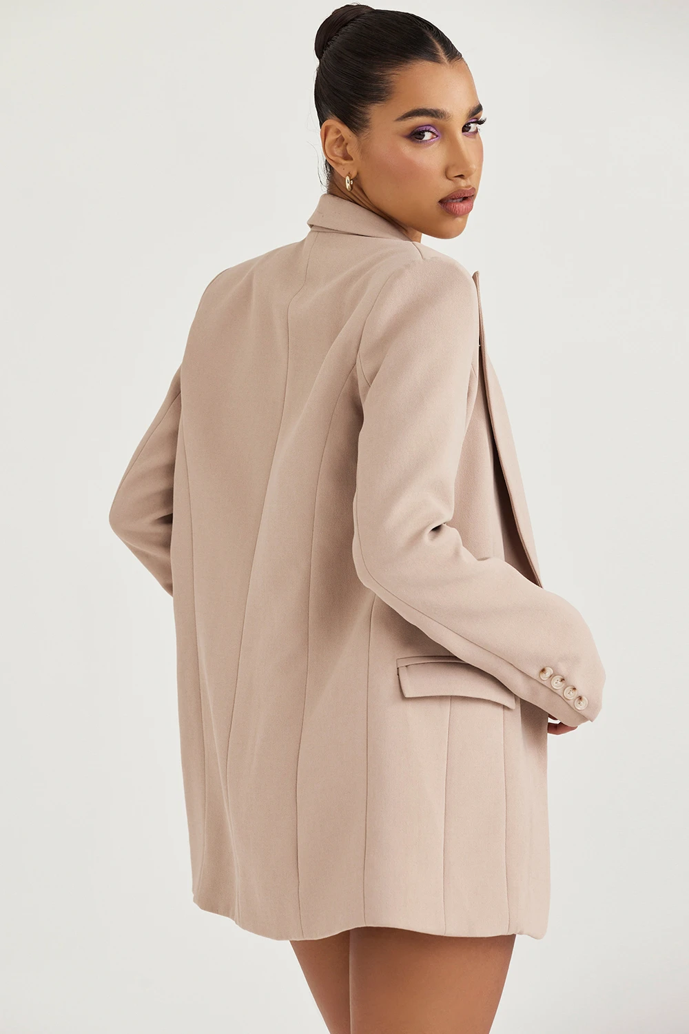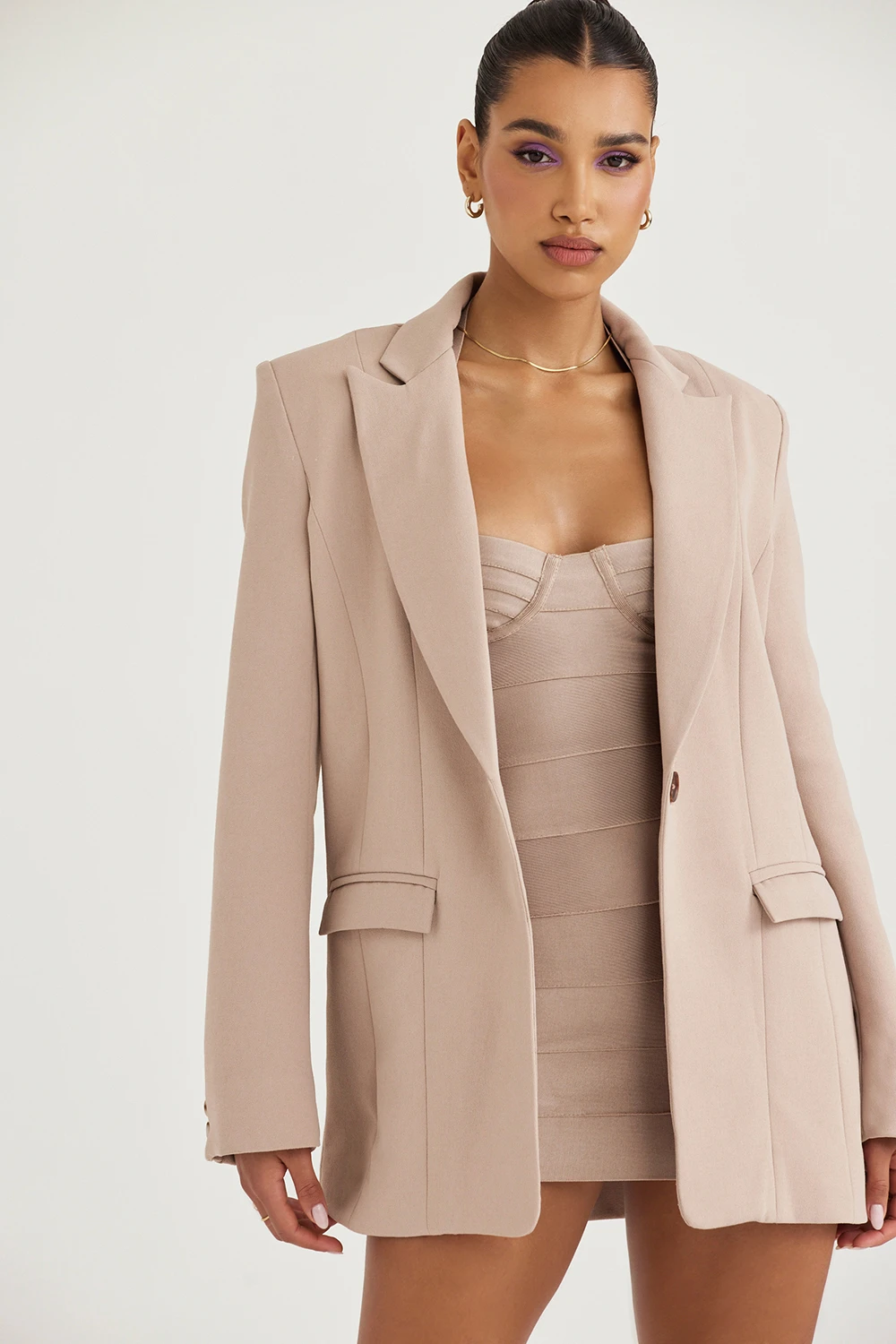 Our ‚Marta‘ blazer is timelessly cool with a single breasted style and tailored for a slightly oversized shape that nips in at the waist. Cut from stretch crepe, ‚Marta‘ has a classic collar with sharp lapels and a low baring open front with a one button fastening to the waist and button cuffs. The shoulders are padded for a structured fit and the front pockets are functional to carry your essentials. It is fully lined for smooth layering. Wear yours over one of our dresses or pair with denim for classic dressing.