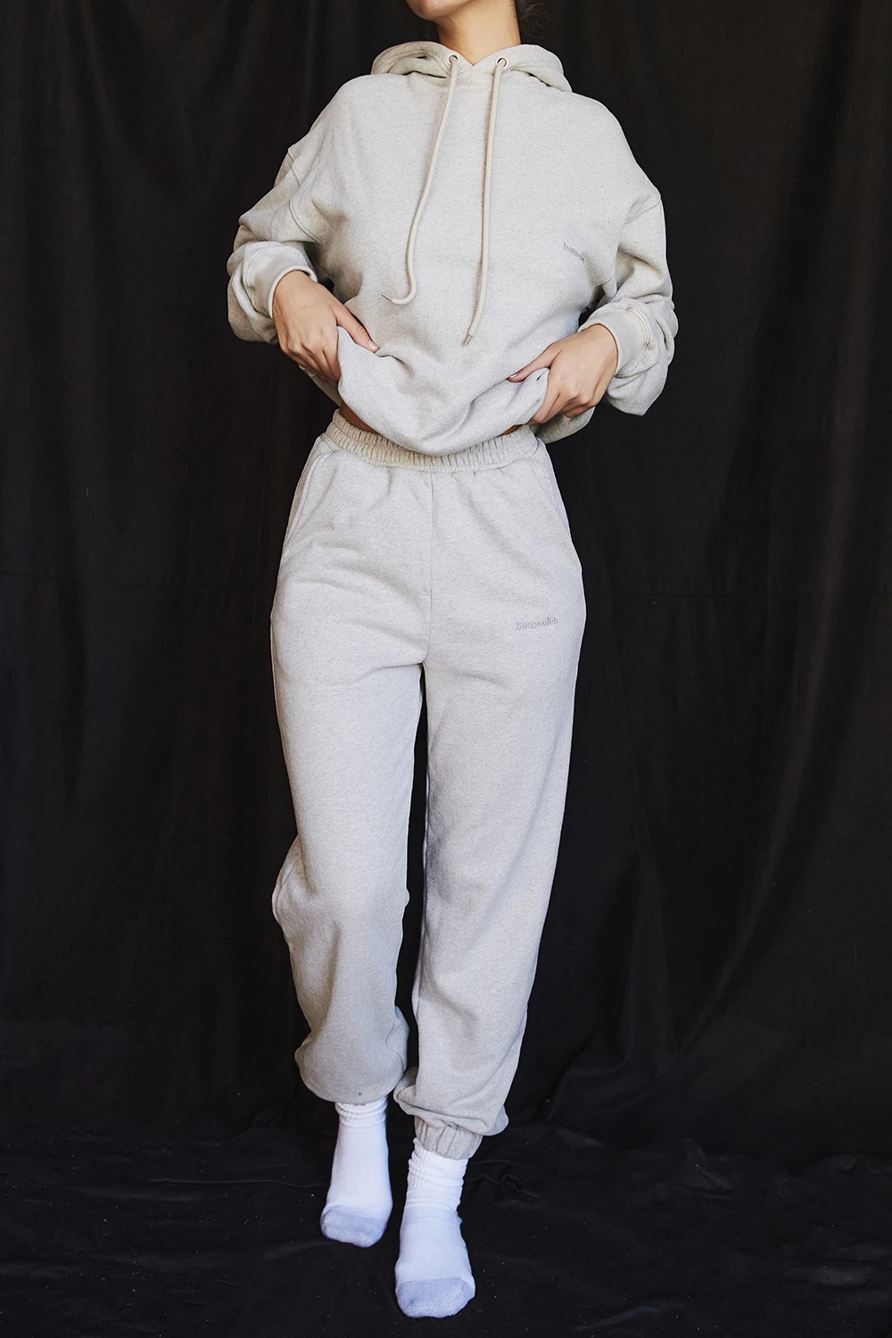 Our ‚Sky‘ joggers are cut from our ultra premium quality heavyweight fleece back jersey with a flattering elasticated waistband and cuffed hems. Featuring a three pocket style and our HouseofCB logo to the front, they are cut with a loose comfortable fit that looks great styled up or down. The slight vintage wash gives it that ultra casual look. Team up with our ‚Halo‘ Light Grey Oversized Hoodie for warm winter dressing.