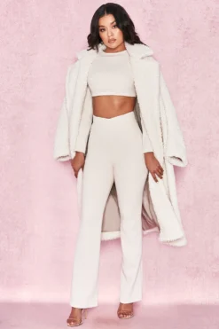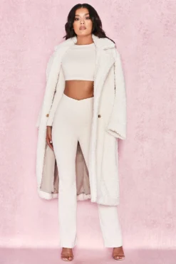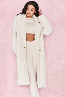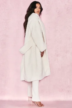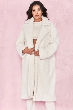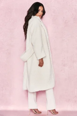 The coat you’ve all been waiting for is here. Crafted from a soft and luxurious faux fur, ‚Bear‘ has an oversized relaxed fit, long sleeves and half belt. We love this teamed over all white for a super glamorous monochrome look.