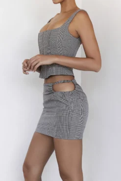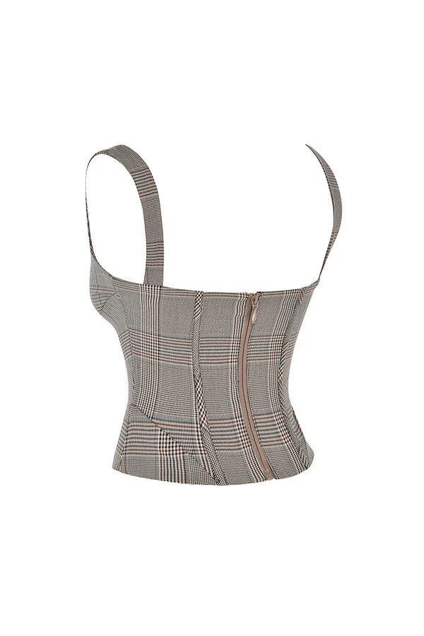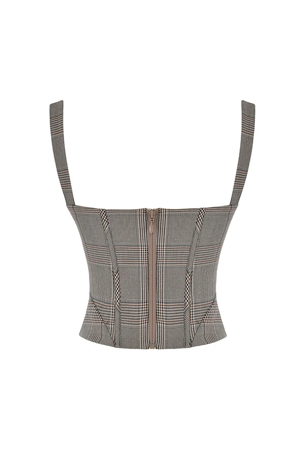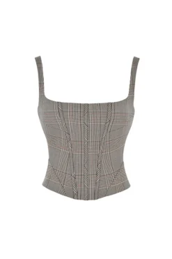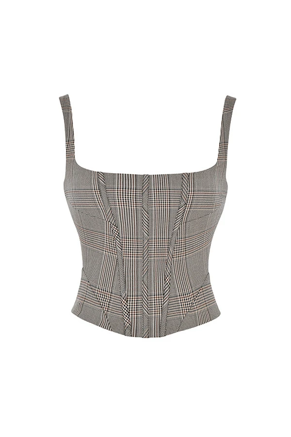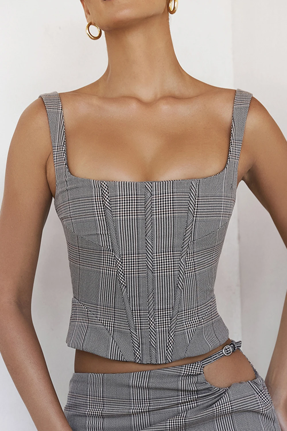 Cut from our finest suiting fabric, this monochrome corset features our incredible internal boning to add structure and cinch the waist for the closest of fits. It has a chequered design and a flattering rounded square neckline to showcase the bust.