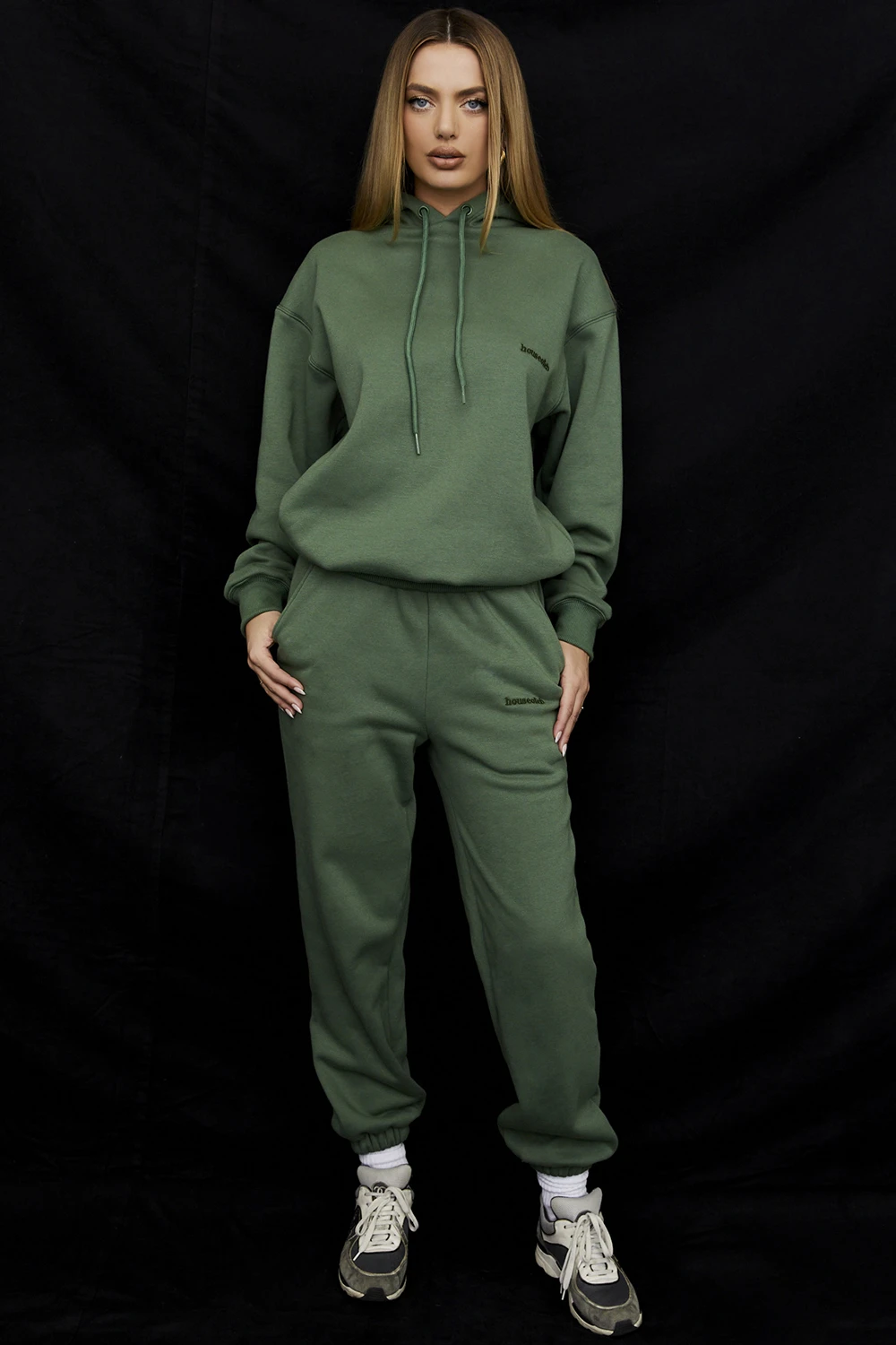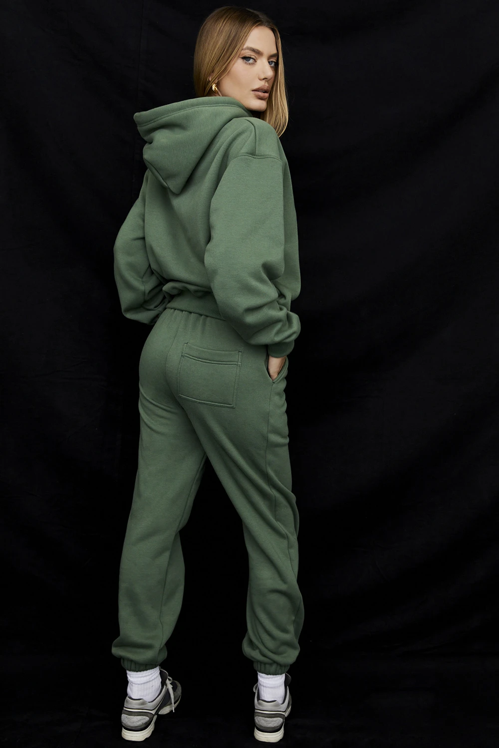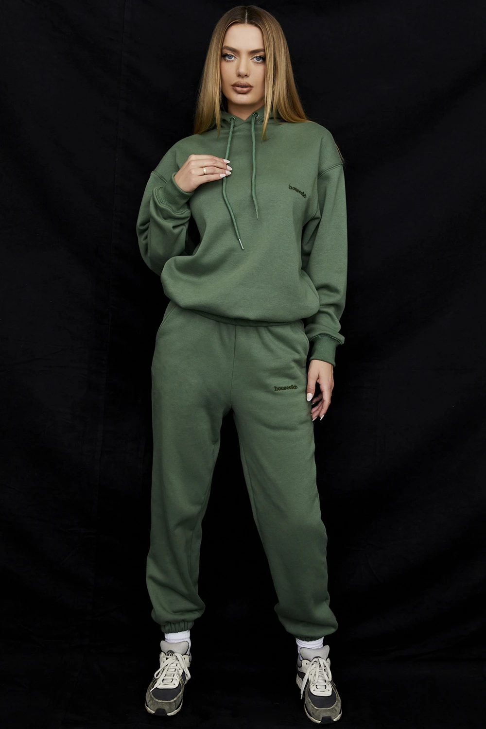 Our ‚Sky‘ joggers are cut from our ultra premium quality heavyweight fleece back jersey with a flattering elasticated waistband and cuffed hems. Featuring a three pocket style and our HouseofCB logo to the front, they are cut with a loose comfortable fit that looks great styled up or down. The slight vintage wash gives it that ultra casual look. Team up with our ‚Halo‘ Moss Oversized Hoodie for warm winter dressing.