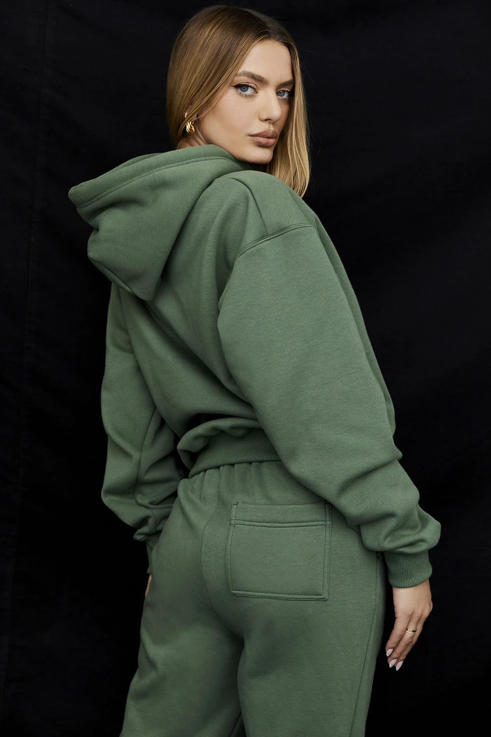 Mastering a cool aesthetic, our ‚Halo‘ hoodie has been designed in a heavyweight yet soft fleece back cotton jersey. It has an oversized fit and pull cord at the neck. It’s embroidered with the HouseofCB logo to the chest and finished with ribbed cuffs and hem. The slight vintage wash gives it that casual look. Wear yours with the ‚Sky‘ moss joggers or half tucked into our latex leggings.