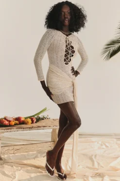 The long sleeves balance the mini hem and we love how the wrap over layer drapes effortlessly to catch the breeze. ‚Carmelita‘ looks ultra chic styled with our ‚Ghost‘ clear strap sandals.