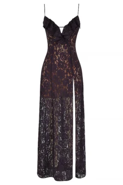 Making women feel beautiful is our obsession and our ‚Malia‘ dress captures this sentiment perfectly. It’s created from corded lace and backed in our special power mesh to mid thigh for modest coverage and a cinched in fit. The frilly ruffles along the v-neckline are ultra flattering, held by adjustable satin straps to ensure a comfortable fit.