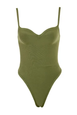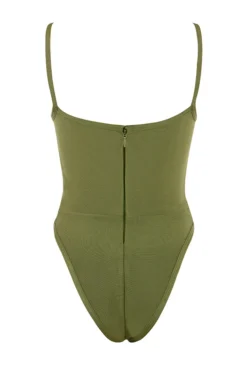 It’s the simple designs that makes our ‚Kamila‘ bodysuit a super cute and versatile option for everyday dressing this season, from mini skirts, to leather trousers, to jeans. It’s made from our infamous stretch bandage fabric to sculpt and shape your figure beautifully in an olive green tone. It has a pretty sweetheart neckline and delicate spaghetti straps for a super sexy and feminine vibe. Wear yours with our ‚Grainne‘ black vegan leather trousers for the perfect date night.