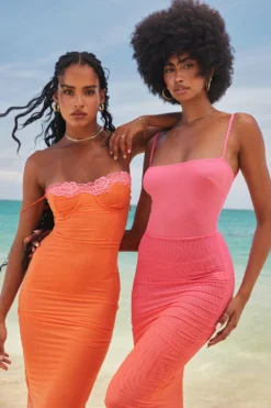 The bodice features our signature corsetry boning to the sides for a structured fit and falls to a simple column silhouette with a split to the back for easy movement. ‚Calista‘ zips up the back for easy on and we love this styled with barely there mules like ‚Lucent‘.