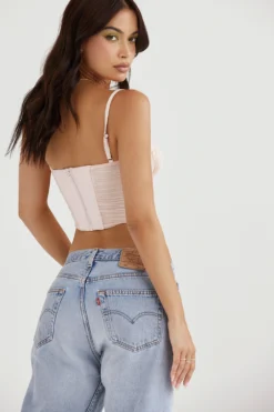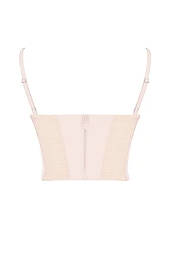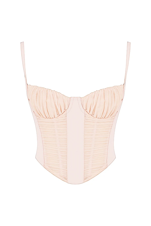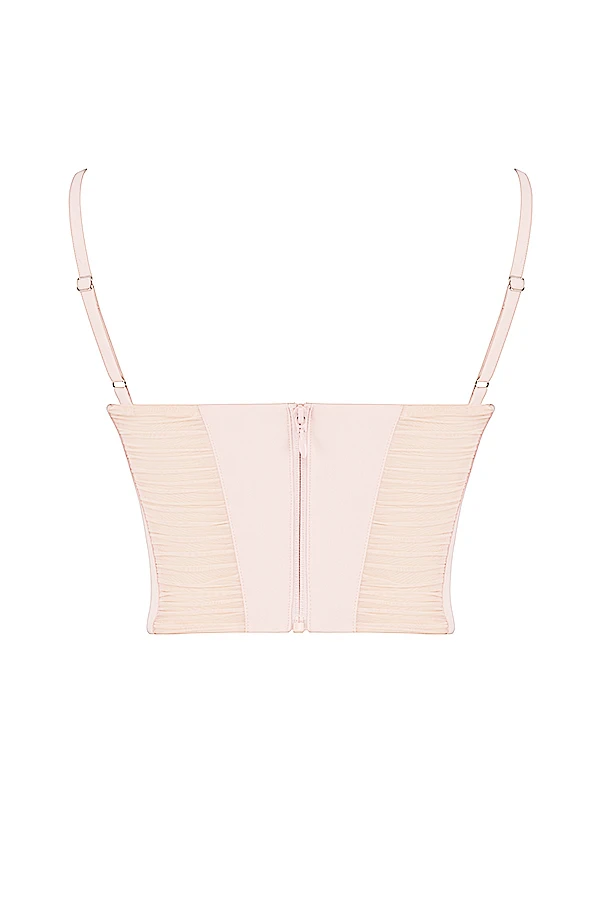 Pretty in pink, ‚Rochelle‘ is so feminine with it’s gathered detail and peony hue that’s just perfect for sunny days. Cut from softly gathered mesh panels and trimmed in a cotton twill, ‚Rochelle‘ features our amazing corsetry boning to snatch the waist with gently gathered, underwired cups for a bust flattering fit. The delicate shoulder straps are adjustable and it’s fully lined in our special sculpting power mesh and stretch woven for comfort.