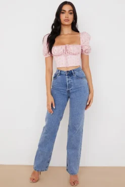 The softly lined cups are gathered in a flattering sweetheart neckline with a delicate drawstring tie to the centre and the pretty puff sleeves add a fun and girly vibe. It is fully lined in a textured fabric for a non slip hold and has a zip to the back for easy on. Compliment the cropped hem with a high-rise denim like our ‚Yara‘ Vintage Fit High Waist Jeans for dreamy summer days. As corsets are designed to fit snugly, we recommend sizing up if you are between sizes.