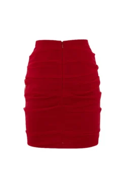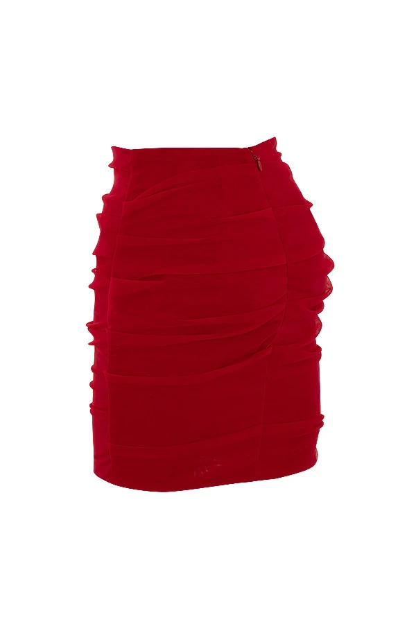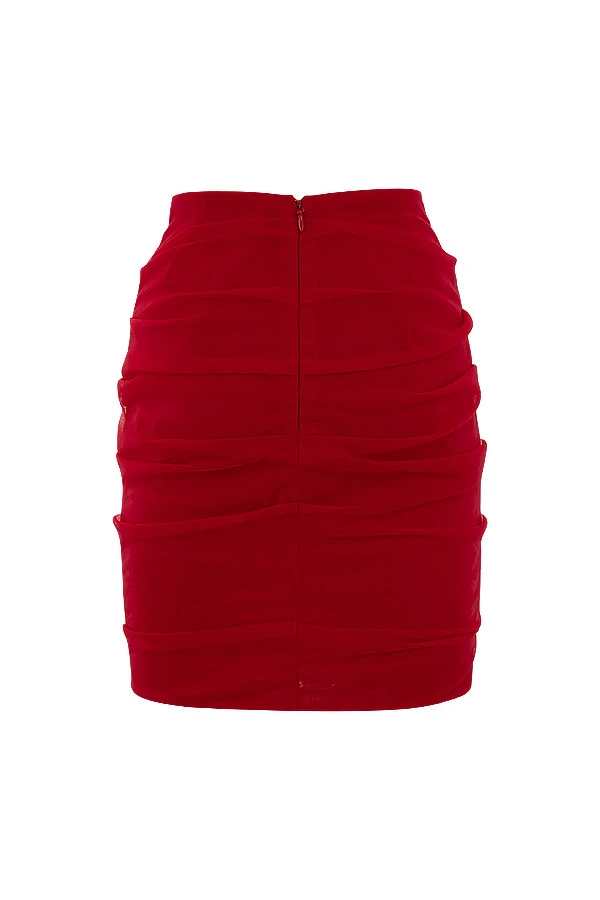 This ultra luxe design is crafted from a delicate and slightly sheer tulle in a seasonal deep red tone. It drapes beautifully over our amazing power mesh lining with its incredible sculpting properties to give you the perfect silhoutte and super cinching effect as it acts like shape wear but is built into the garment for the most comfortable fit. Its sits comfortably on the natural waist and is designed to sit just above the knee for a more sophisticated look and we love it teamed with one of our bodysuits such as our ‚Yvette‘ for those stylish dinner dates.