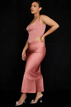 Our ‚Colette‘ midi skirt is beautifully cut on the bias from a fluid silky satin that skims the hips and becomes a little looser to flow effortlessly across the body. We love how the asymmetric seams create a panel effect and the way it sits just below the natural waistline for easy and effortless dressing. It zips to the back for easy on and is fully lined for comfort. Wear yours with our ‚Edetta‘ corset in rose.