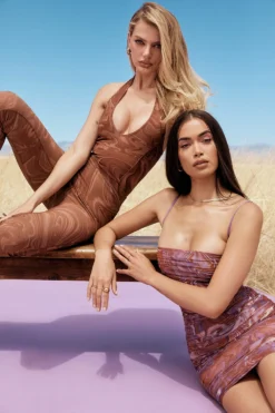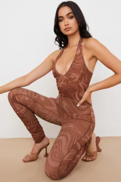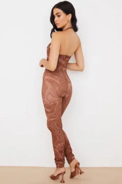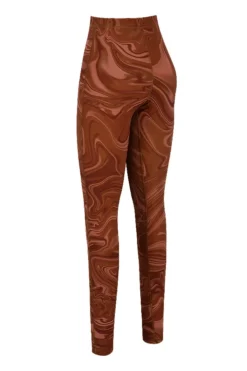 They sit high on the natural waist that is oh-so flattering and gives the illusion of a tiny waist with an elasticated waistband for a pull on style. ‚Violet‘ make a bold statement on their own and look even more luxurious when styled with the ‚Sabine‘ Brown Swirl Mesh Halter Bodysuit for a super feminine put together look.