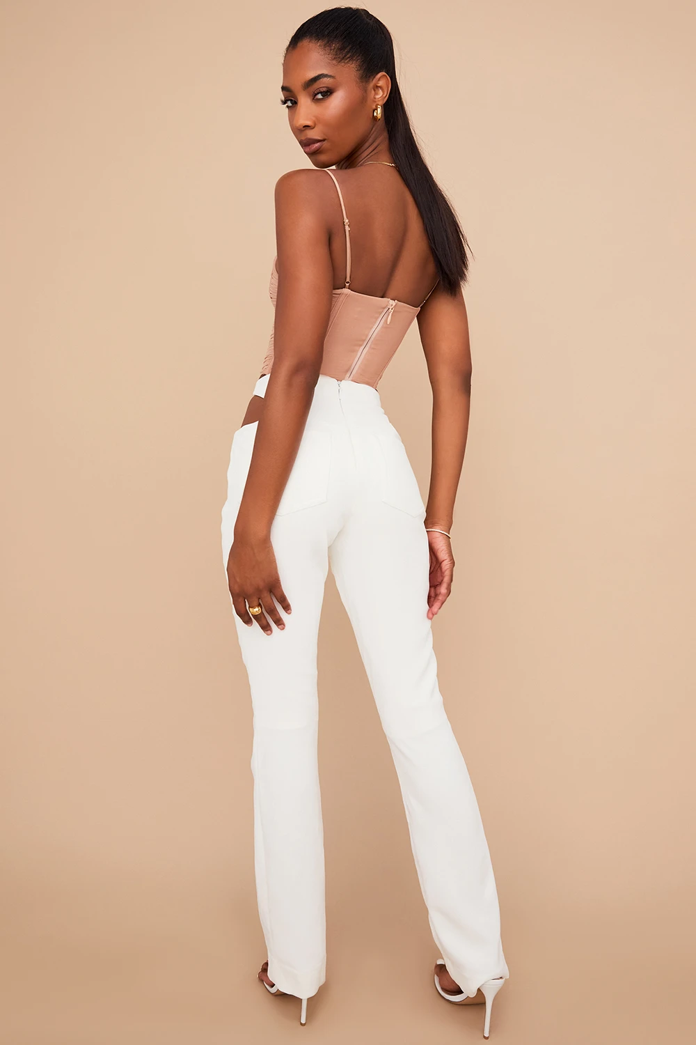 We love the flattering slim fit through the legs to hug your curves for a peachy fit and the slight flare from the knee sits elegantly over the highest of heels. They are fully lined to the knee in a stretch satin for a smooth and comfy finish and we think they look great teamed with a corset like our ‚Lilibeth‘ white top.