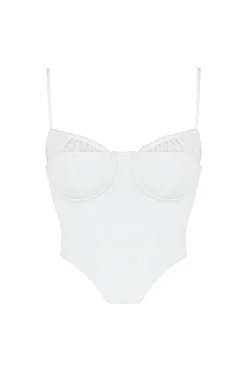 Ultra pretty and super feminine, ‚Emiliana‘ is cut from a crisp and fresh cotton twill in a soft white tone and has a pretty sweetheart neckline with delicate spaghetti straps. The bodice features our incredible corsetry boning to snatch the waist for a figure cinching fit and has balcony underwire to the bust for full support and uplift.