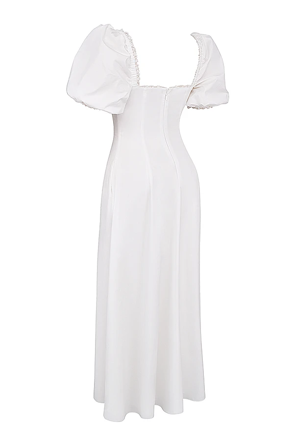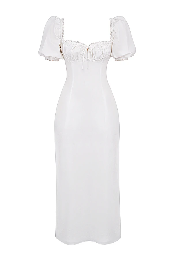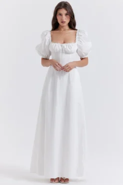The pretty puff sleeves add to the fun and floaty vibe of ‚Felizia‘ and we love how the voluminous maxi skirts falls to graze the ankles. Wear yours with our ‚Lola‘ mid heels in white for a soft tonal vibe. The ‚Regular Cup‘ option suits cup size A-C whilst the ‚Bigger Cup‘ option suits cup size D-E.