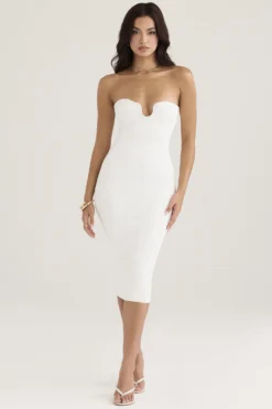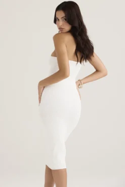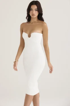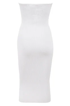 Sculpting and stretchy ribbed knit dresses are so flattering and effortlessly stylish, making our ‚Oriana‘ midi dress a season favourite. It’s cut for a body skimming fit and has a notched sweetheart neckline in a strapless silhouette that’s fitted with an inbuilt wire to keep the shape. It falls below the knee in a classic midi length and pulls on for easy wear. Team yours with our ‚Ghost‘ Clear strap sandals.